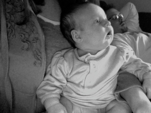Yep, that’s right … my onesie is on backwards, somehow my Daddy didn’t know snaps go in the back and the pink bow goes in the front. I don’t have any pants on either. Daddy says he just doesn’t understand girl’s clothes yet. Mama said, “Oh well, better luck next time.” So, we took a picture and continued on with our lazy Sunday.