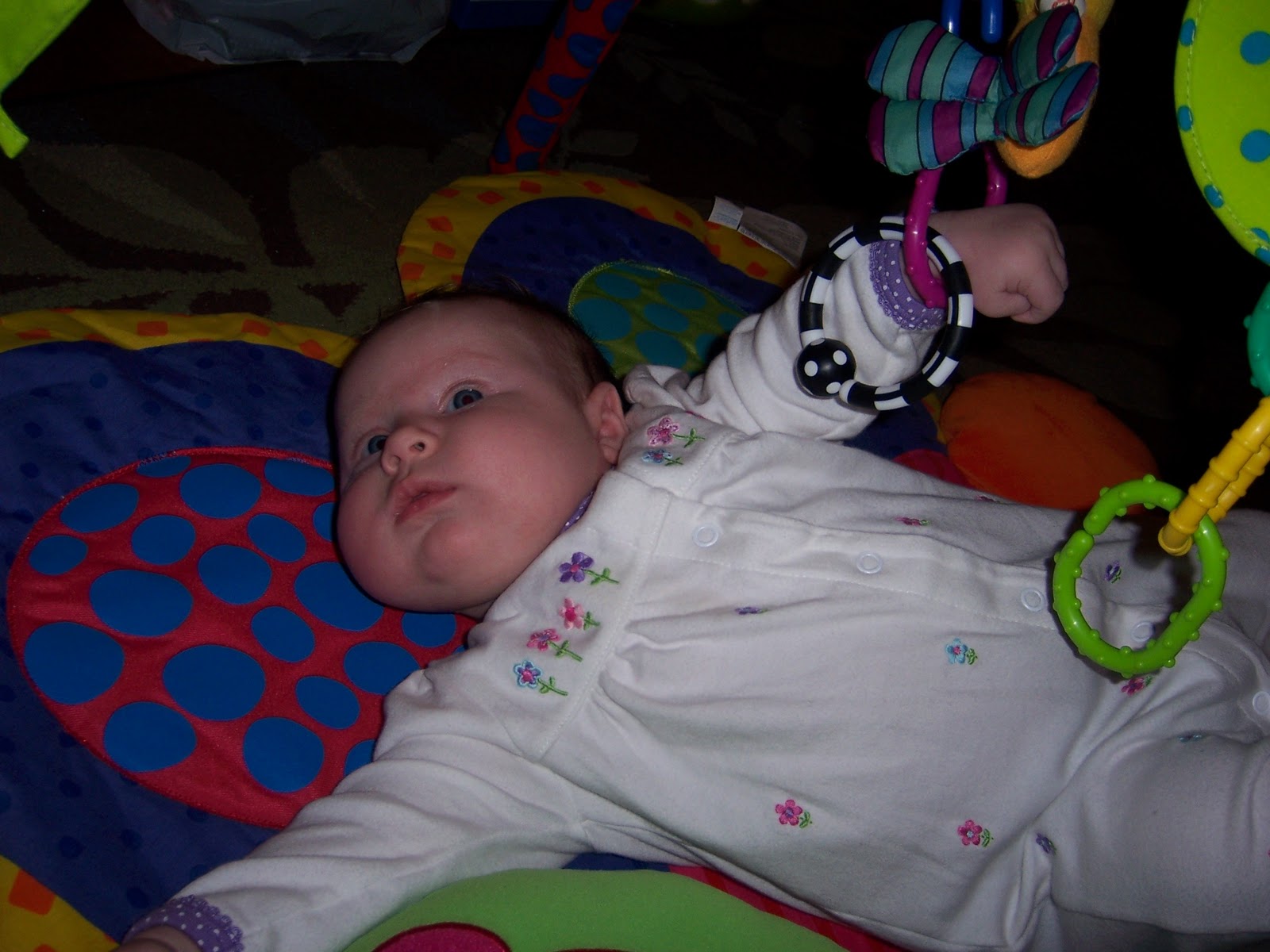 | We broke out the playmat and it has been a hit. Jemma even grabbed one of the dangling rings! |