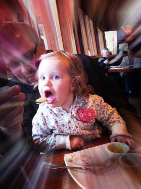 Cheesecake Factory brings out a plate of bread and bananas (free) for little ones! I was kind of surprised the first time that happened….