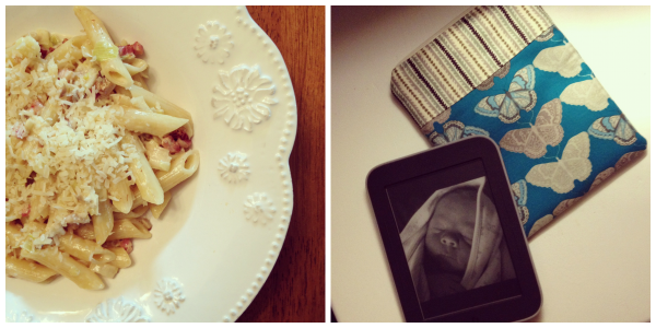 left | pancetta and leek pasta … right | my sweet lil’ Nook and darling case c/o Pog Totes